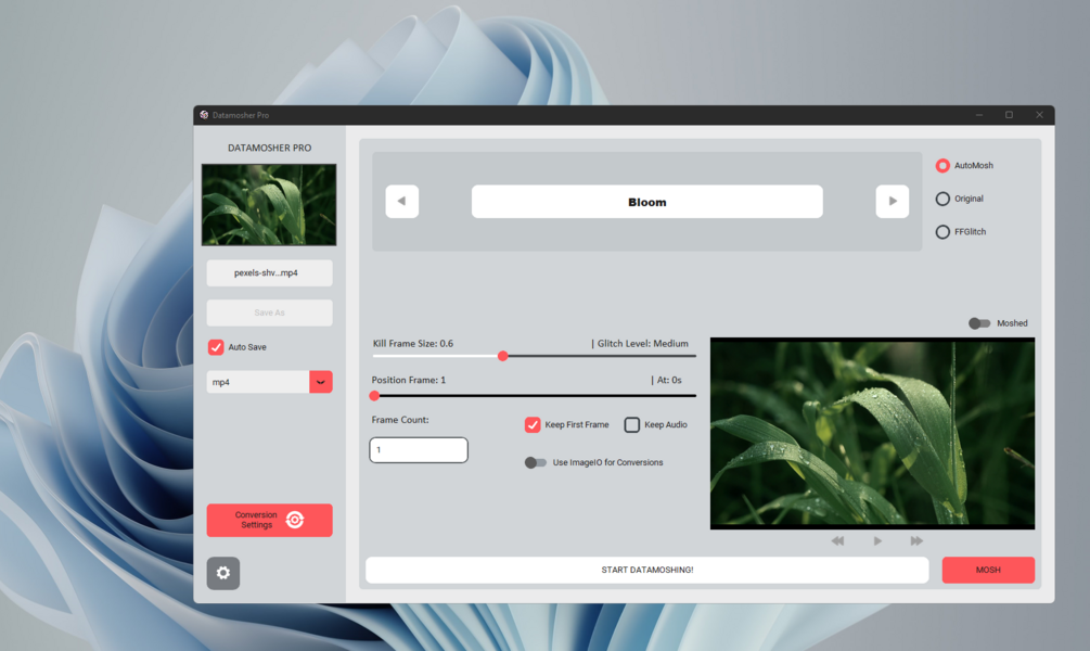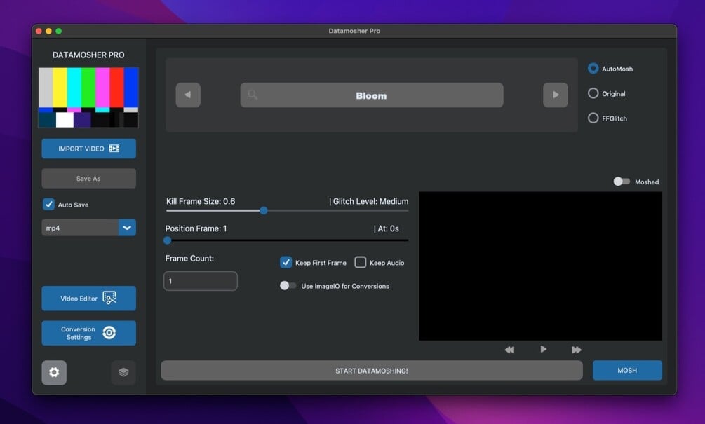 From here you can get the premium executable version of DATAMOSHER-PRO for Windows/MacOS. A powerful automated glitching tool with lots of datamosh and glitch effects. You can easily mosh any video you want!